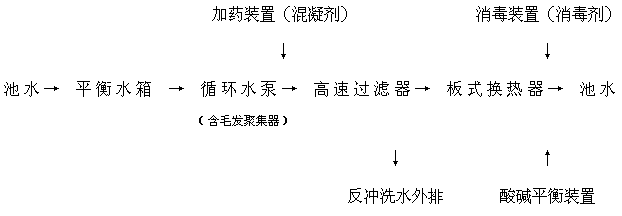 5、泳池循環系統工藝流程說明簡述(詳見下圖)