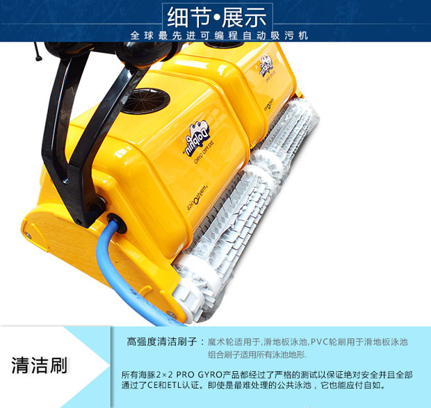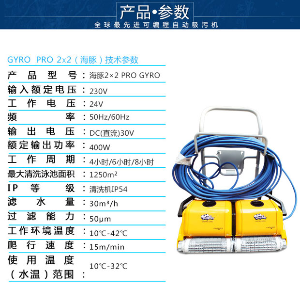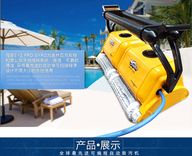 •   海豚2x2游泳池吸污機是以色列軍工轉民用產品代表,配電線防纏繞設備,配陀螺儀,標準直線行走,可爬墻清洗池壁及水線,近幾屆奧運會指定使用產品,全球市場份額40%。